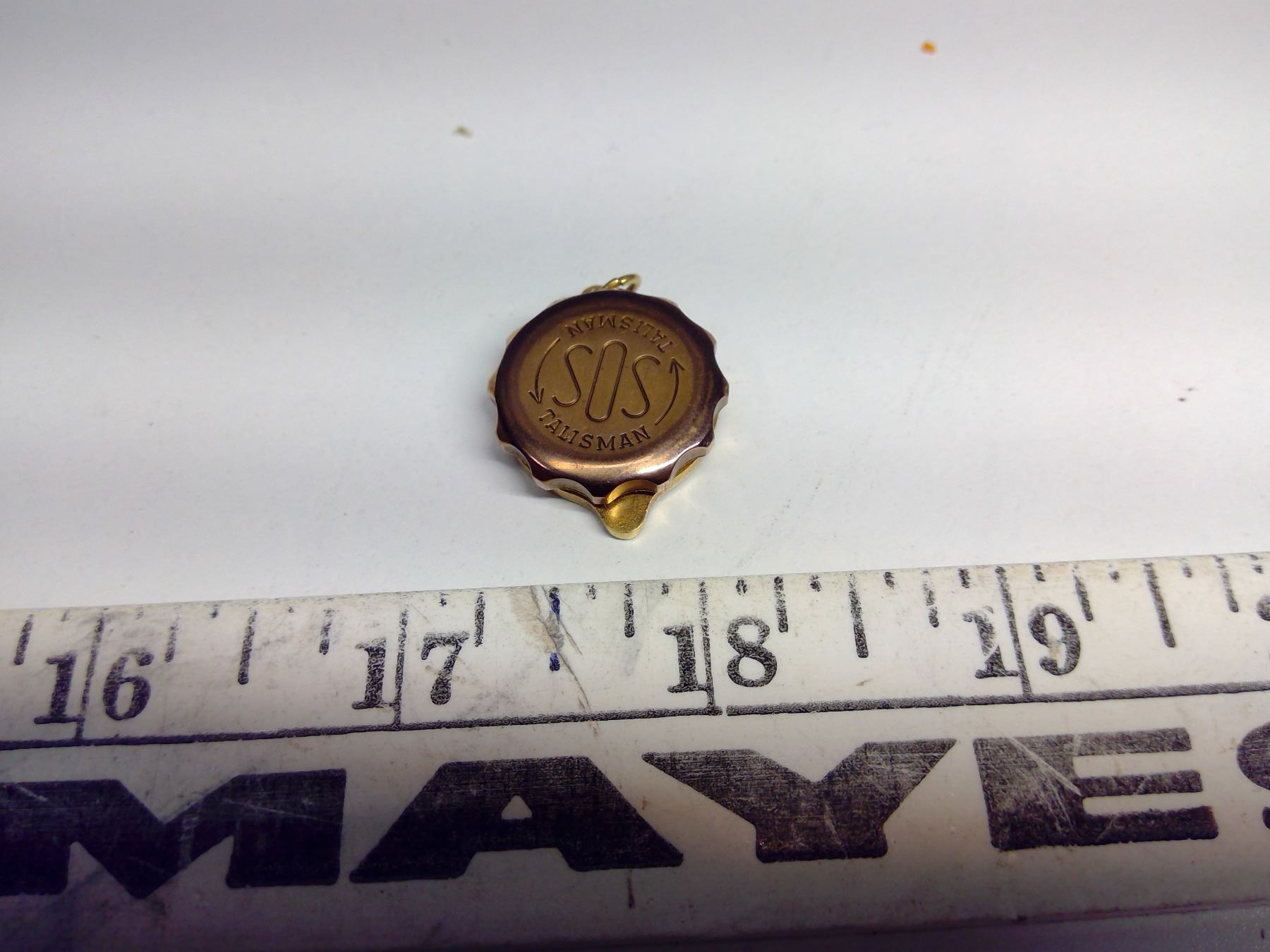 “SOS” Talisman Pendant, Gold Plated, Unscrews to Hold ID
