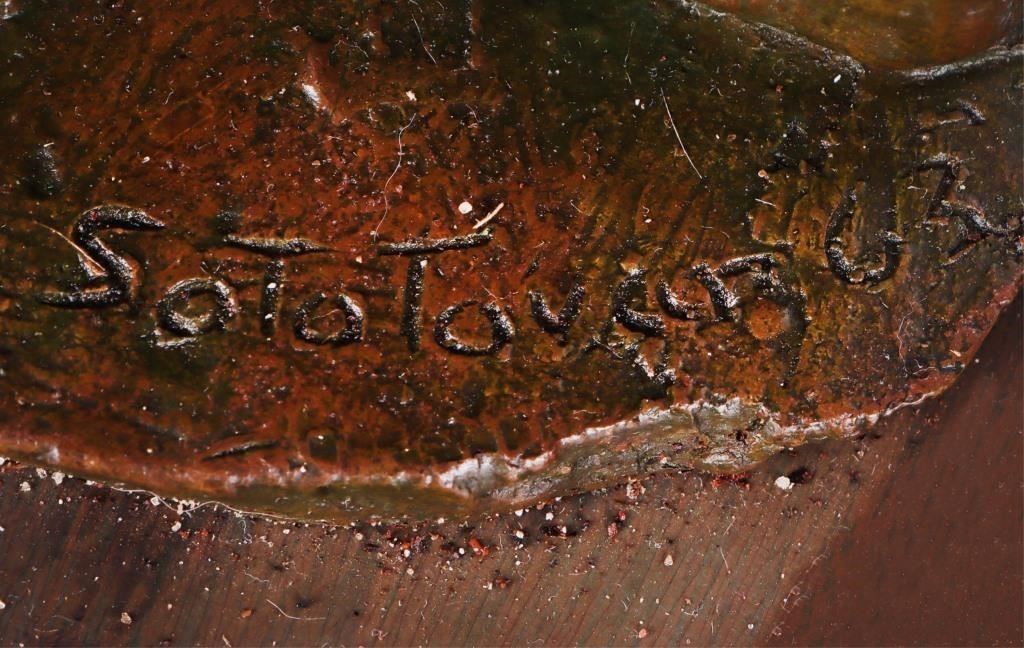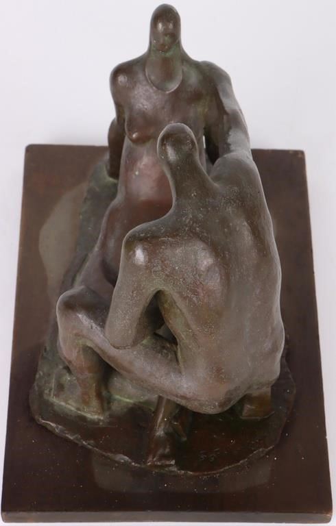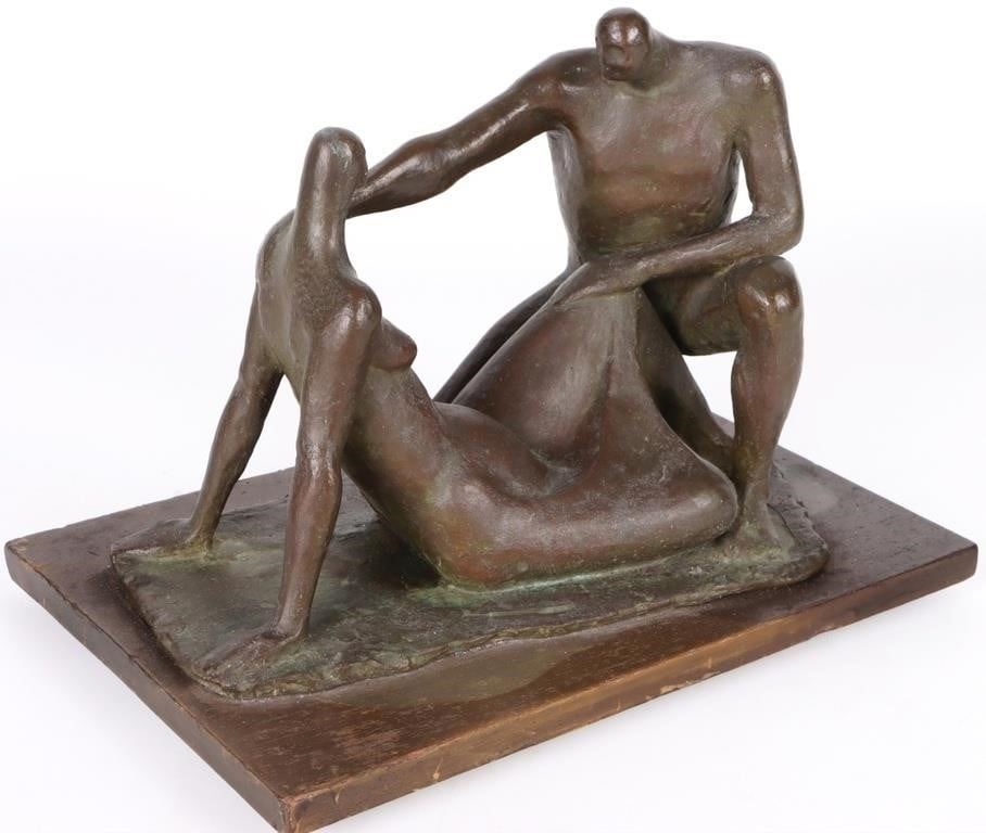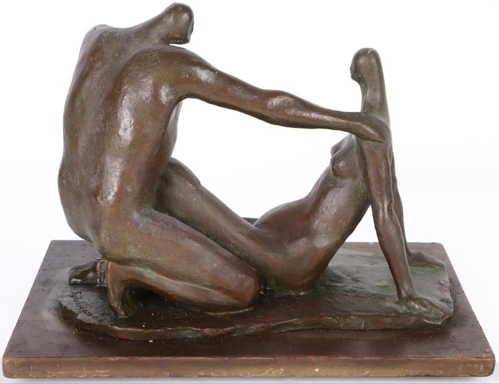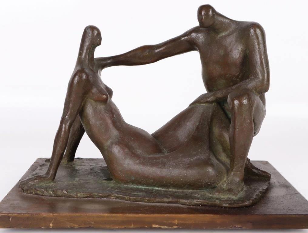 Salvador Soto Tovar (Mexican) Cold cast Bronze Statue "Amantes" which translates to "Lovers". Depicts man & woman figures sharing an intimate moment of relaxation together.