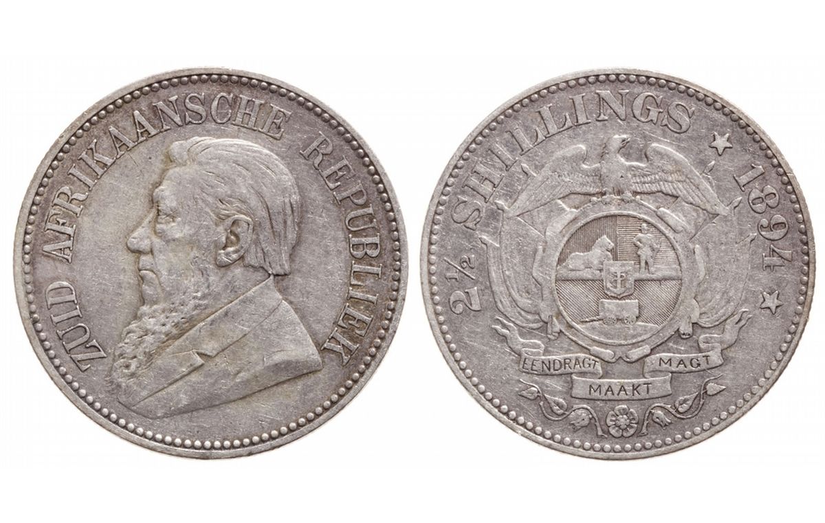 Half Crown 1894. 7. ZAR 2-1/2 shilling; Scarce date. Choice Very Fine.