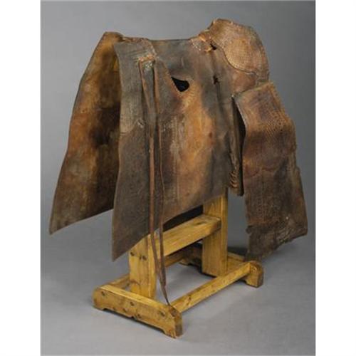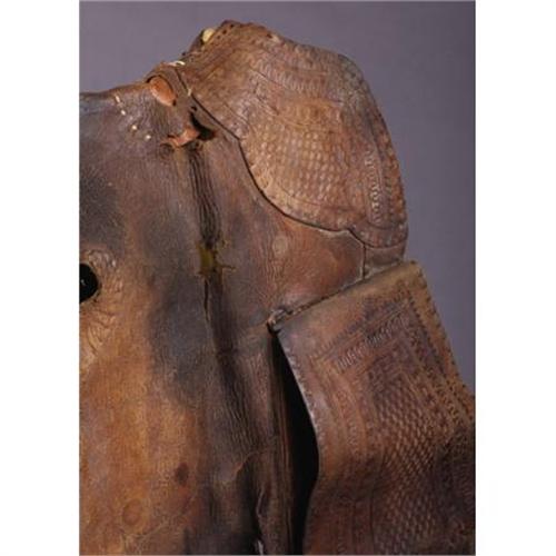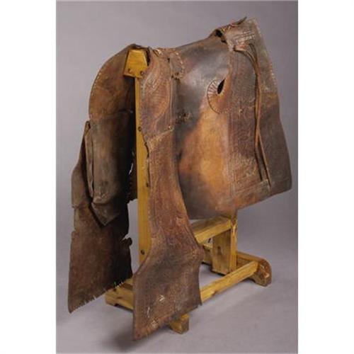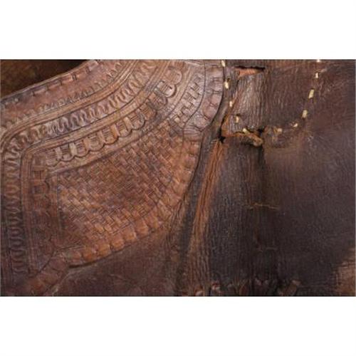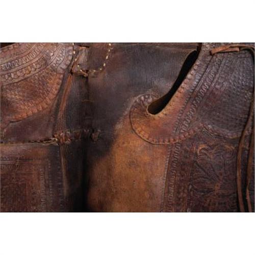 <B>SOUTH AMERICAN MOCHIA, CIRCA EARLY 20th CENTURY</B></I> - Leather saddle cover with attached bag skirts; combination tooling; basket stamp and floral<BR><BR><B>Condition:</B></I> Very poor condition<BR><BR><b>Shipping:</b> Miscellaneous Collectibles, Larg (<a target="_blank" href="http://www.heritageauctions.com/common/shipping.php">view shipping information</a>)