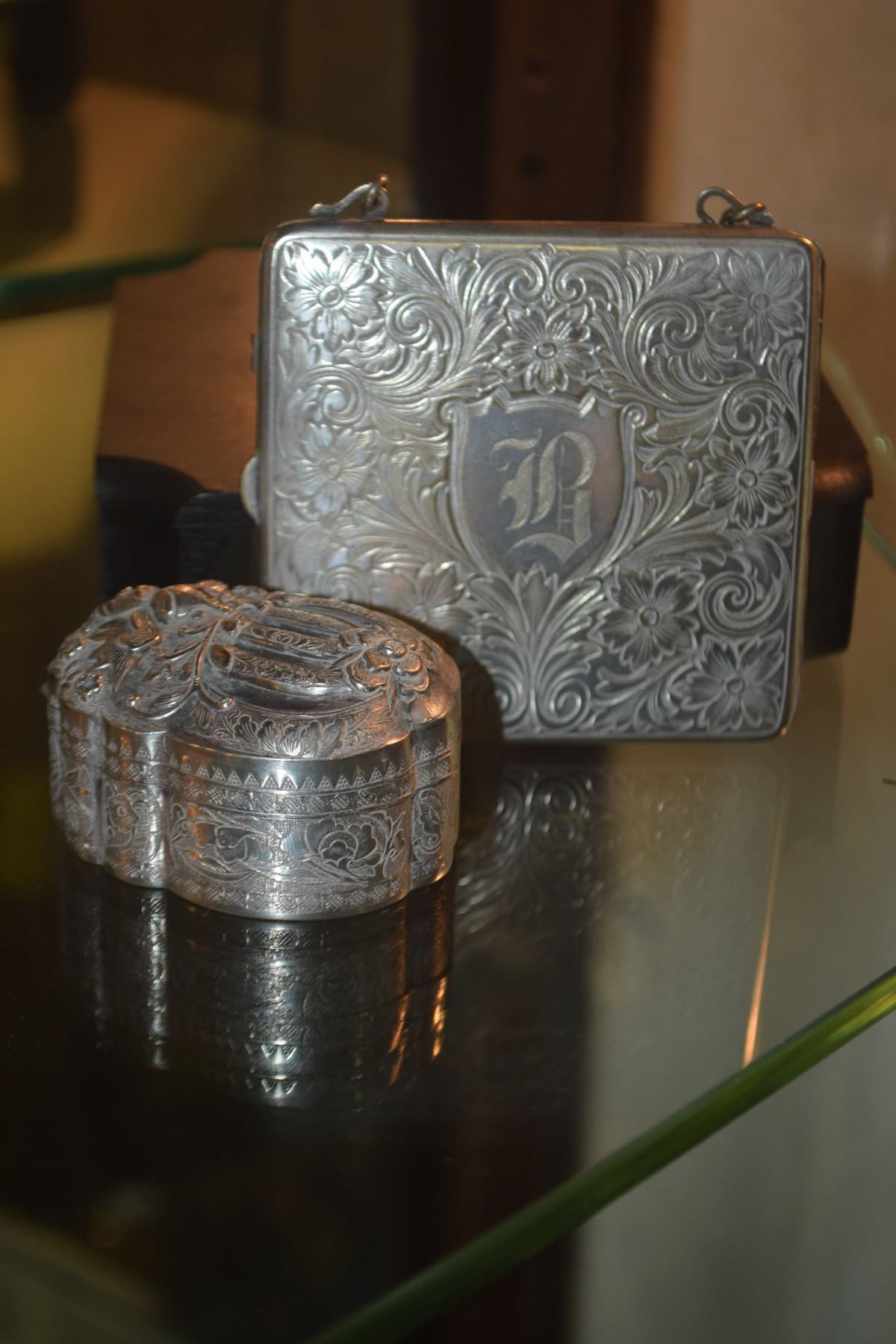 SOUTH EAST ASIAN SILVER BOX & CONTINENTAL SILVER COIN PURSE W/MIRROR