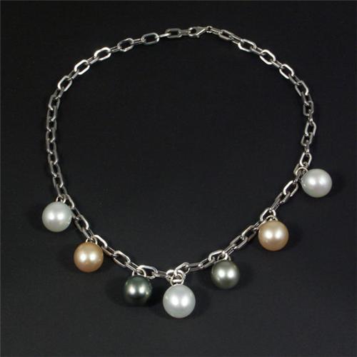 NECKLACE: Stylish 14K white gold anchor link chain with multicolored south seas pearls dangling from it. Three of the pearls are white with rose overtones and measure approximately 14.50mm by 16.00 mm. Two pearls are gold with rose overtones and measure approximately 14.50mm in diameter. Two pearls are gray and measure approximately 14.50 mm. Appraisal included.