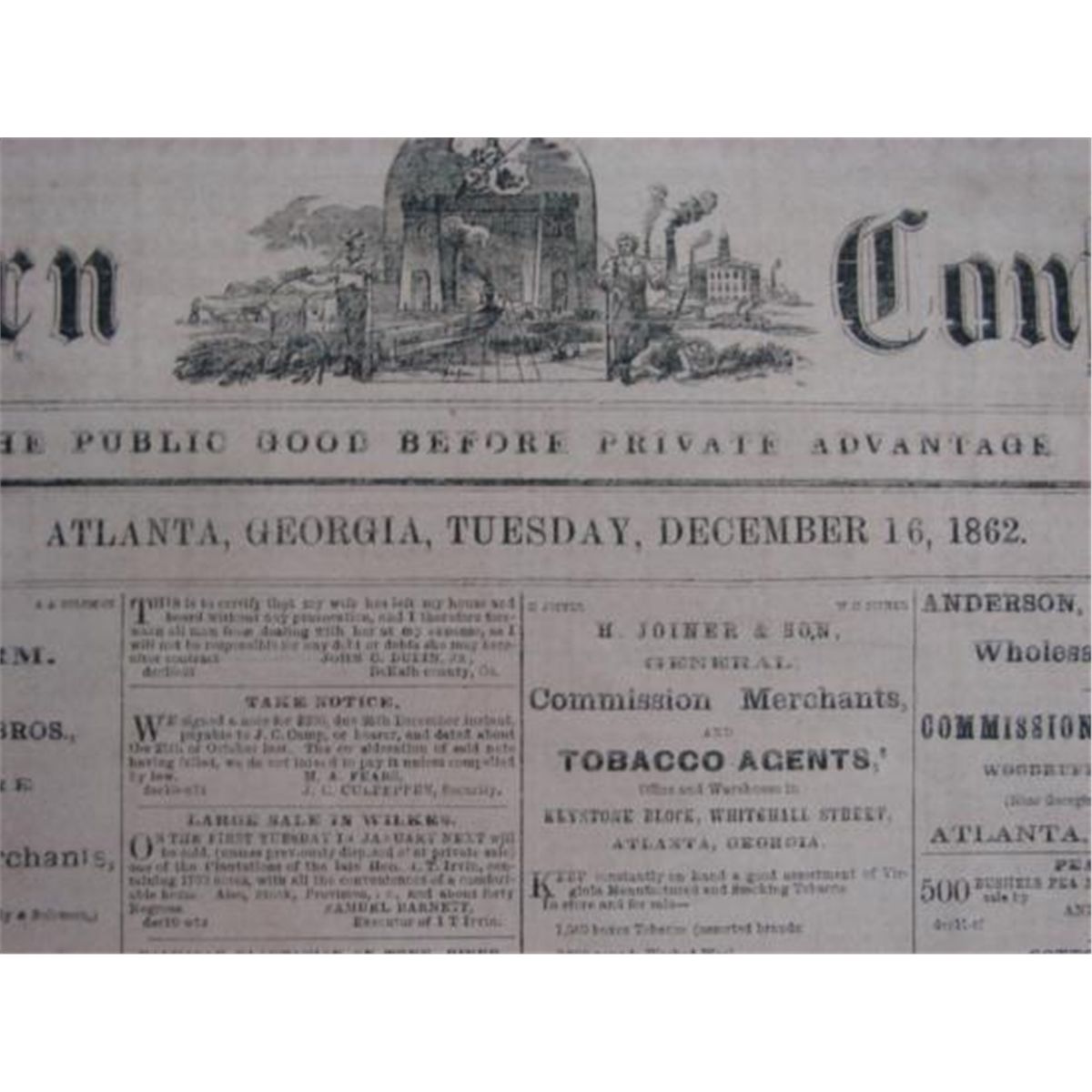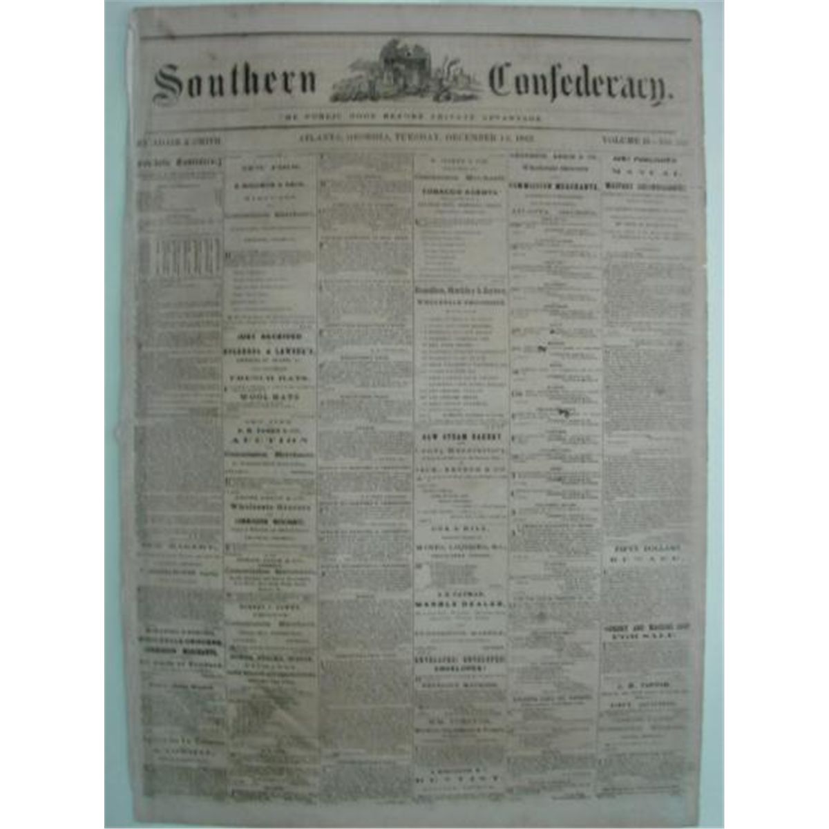 SOUTHERN CONFEDERATE NEWS PAPER - ATLANTA, GEORGIA - EXTREMLY RARE, PRINTED PRIOR TO OCCUPATION - DATED DECEMBER 16, 1862