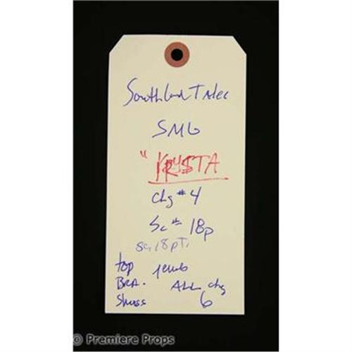 SOUTHLAND TALES - A must have for fans of the film, this is Krysta Now's (Sarah Michelle Gellar) screenworn pink "Krysta Now" shirt with "Now" logo at front lower left and pink "Juicy Couture" terry cloth skirt. Wardrobe tag is included. Add this impeccable costume from SOUTHLAND TALES to your movie memorabilia collection today!(SLT1028)