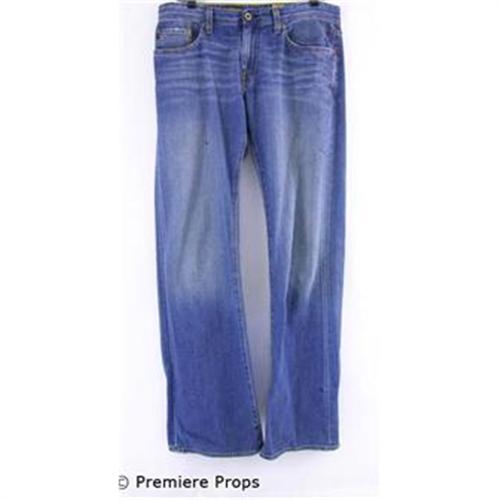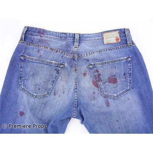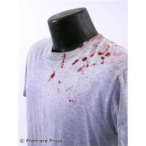 SOUTHLAND TALES - This is Roland's (Sean William Scott) bloody screenworn costume. It includes a heather-gray "American Apparel" s/s t-shirt with bloodstains near the left shoulder (inside tag reads "Roland" in black marker), and a pair of bloody bue denim "Adriano Goldschmied" 5-pocket "The Fillmore" jeans. This is your chance to own a piece of movie magic from the set of SOUTHLAND TALES. (SLT1020)