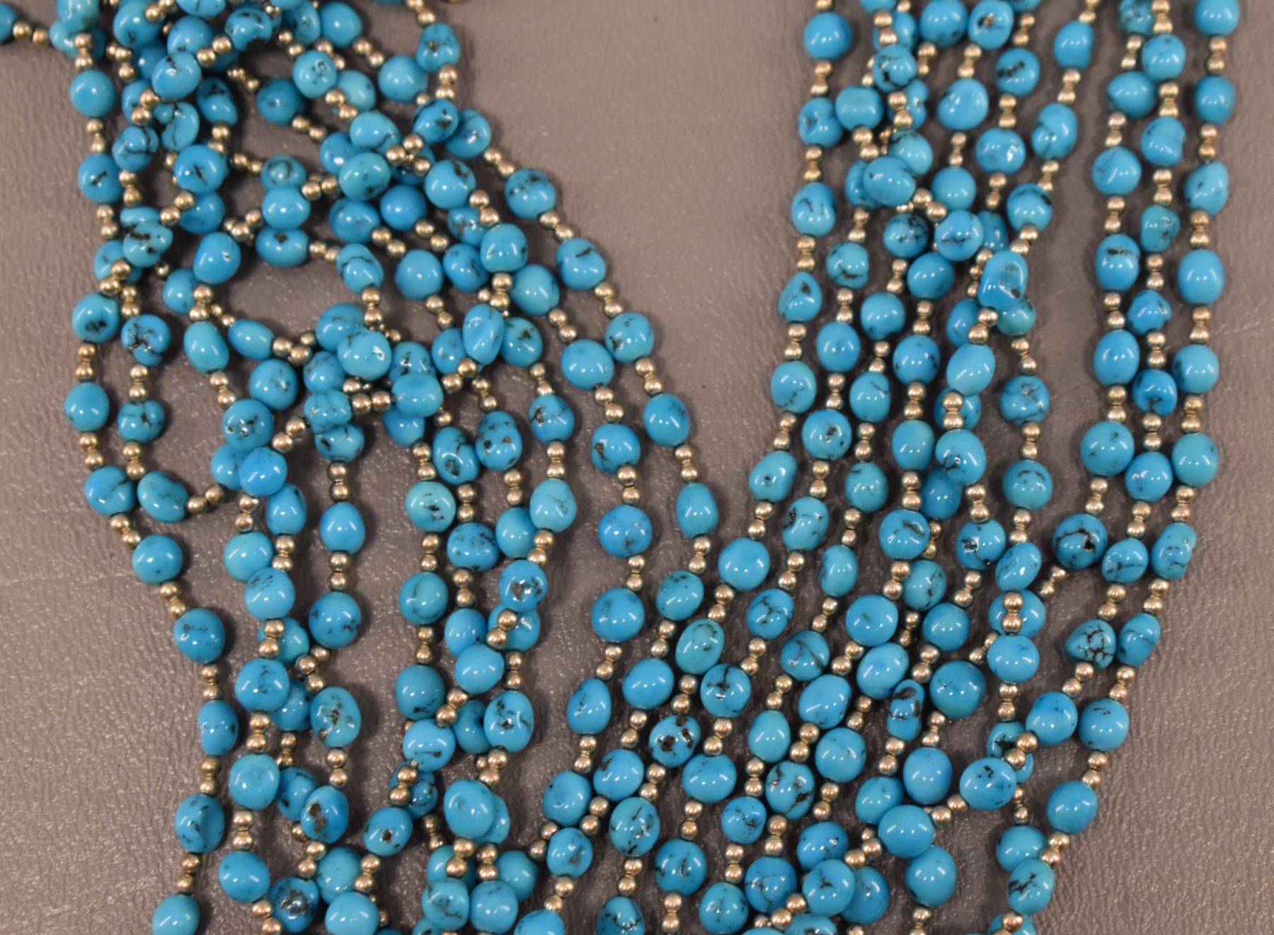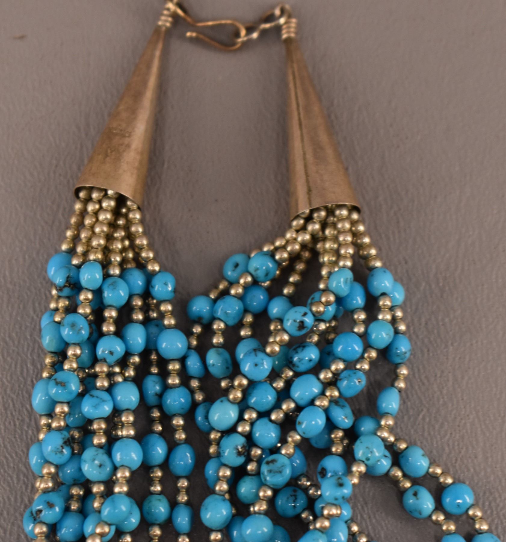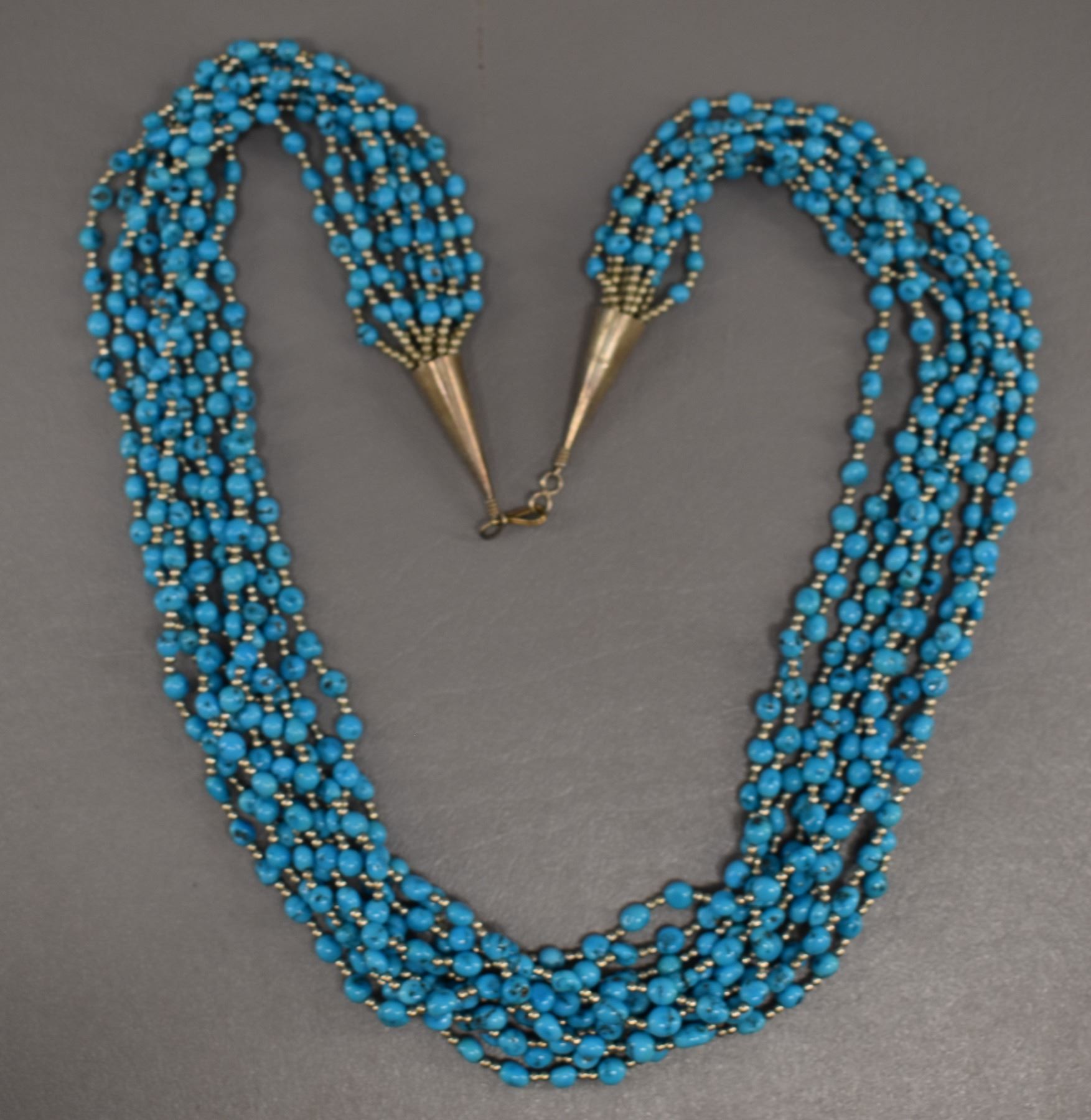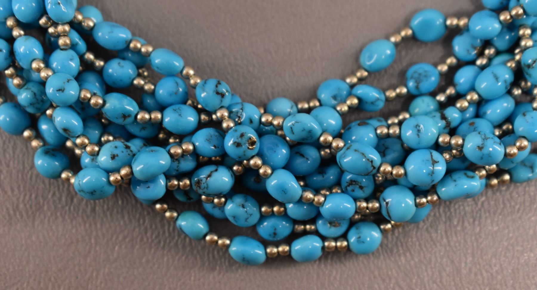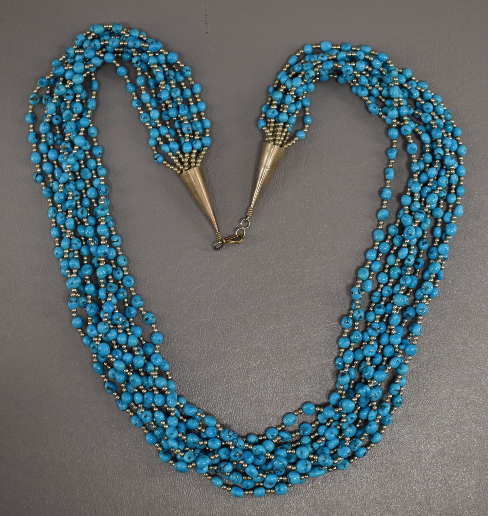 2000's ten strands of sterling silver and turquoise beads 26" long