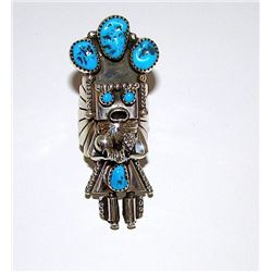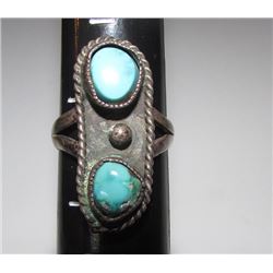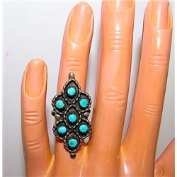 Vintage Old Pawn Native American ZUNI Sterling Silver Cerillos Mine Turquoise Statement Ring Size 5