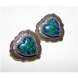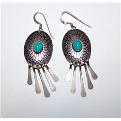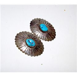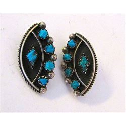 Vintage Old Pawn Native American Zuni Sterling Silver Turquoise Clip On Earrings
