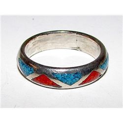 Native American Navajo Old Pawn Sterling Silver 925 Turquoise Coral Chip Inlay Band Ring Band Size 8