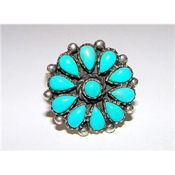 Vintage Old Pawn Native American Zuni Sterling Silver Sleeping Beauty Mine Turquoise Rosette Cluster