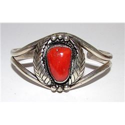 Vintage Old Pawn Native American Navajo Jerry Johnson Sterling Silver Mediterranean Coral Cuff Brace