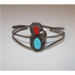 Old Pawn Native American Navajo Sterling Silver Coral Turquoise Cuff Bracelet