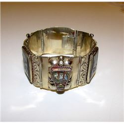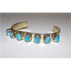 Old Pawn Native American Zuni Sterling Silver Sleeping Beauty Mine Turquoise Mosaic Inlay Bracelet S