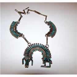 Vintage Old Pawn Native American Navajo Sterling Silver Small Squash Blossom Necklace