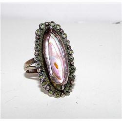Vintage Pre Eagle Taxco Mexican Sterling Pink shell MOP statement ring. The ring is size 6. Nice patina, can be polished upon request. Impressive piec