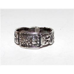 For your consideration is this exceptionally detailed vintage sterling silver 925 tribal South American deity design ring in size 4 in nice vintage co