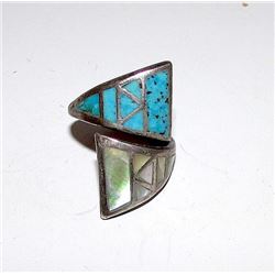 Navajo Old Pawn Native American Sterling Silver Turquoise MOP Channel Inlay Bypass Adjustable Size R