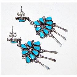 ZUNI Native American Sterling Silver Turquoise Pierced Dangle Statement Earrings