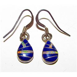 Vintage Native American Zuni Lapis Opal Inlay Dangle Pierced Earrings