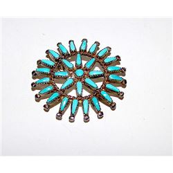 Vintage Old Pawn Native American Zuni Sterling Silver Turquoise Rosette Cluster Brooch Pin Pendant
