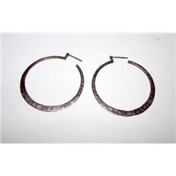 Boho Sterling Silver 925 Large Hoop Statement Pierced Earrings 2" Hoop Earrings Hand Tooled Silver