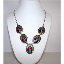 Vintage Native American Navajo Sterling Silver Turquoise Coral Malachite Lapis Jet Channel Inlay Nec