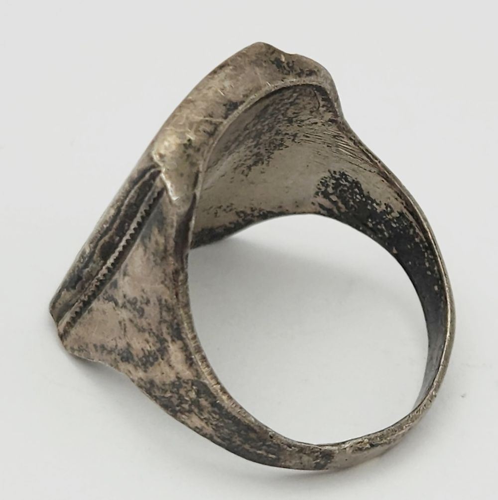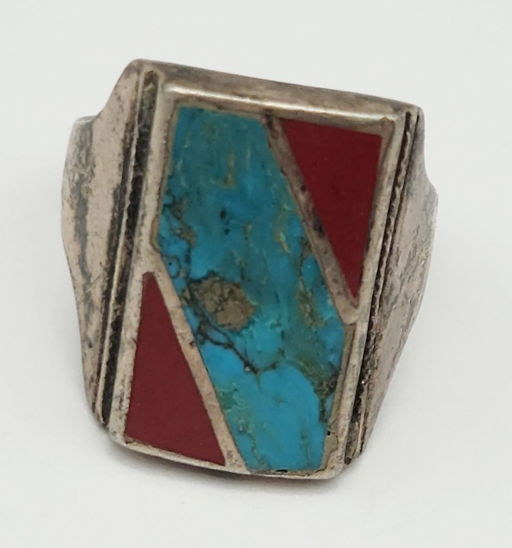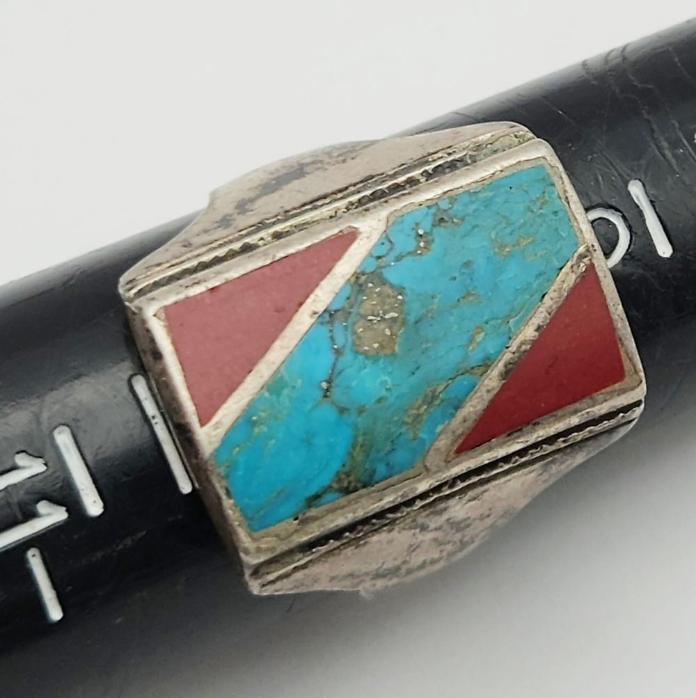 CORAL AND TURQUOISE INLAY DESIGN-RING SIZE 10-TOTAL 6 DWT