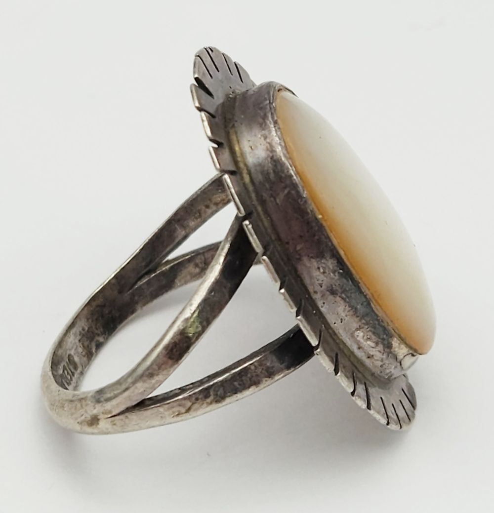 MOTHER OF PEARL CENT STONE-RING SIZE 9-TOTAL 5 DWT