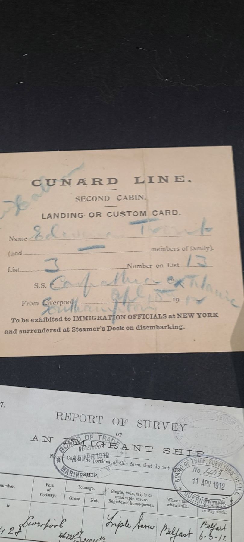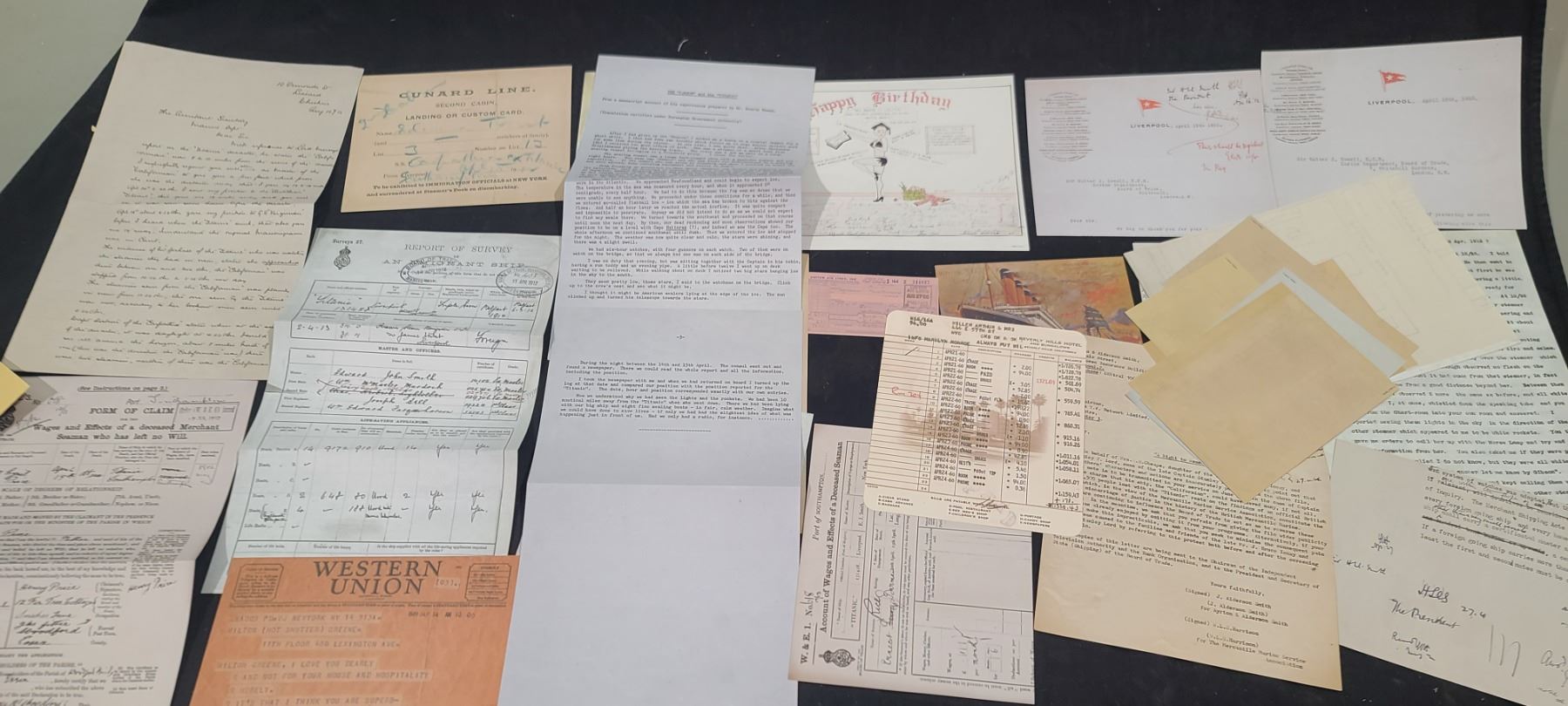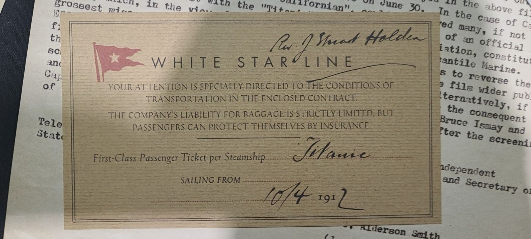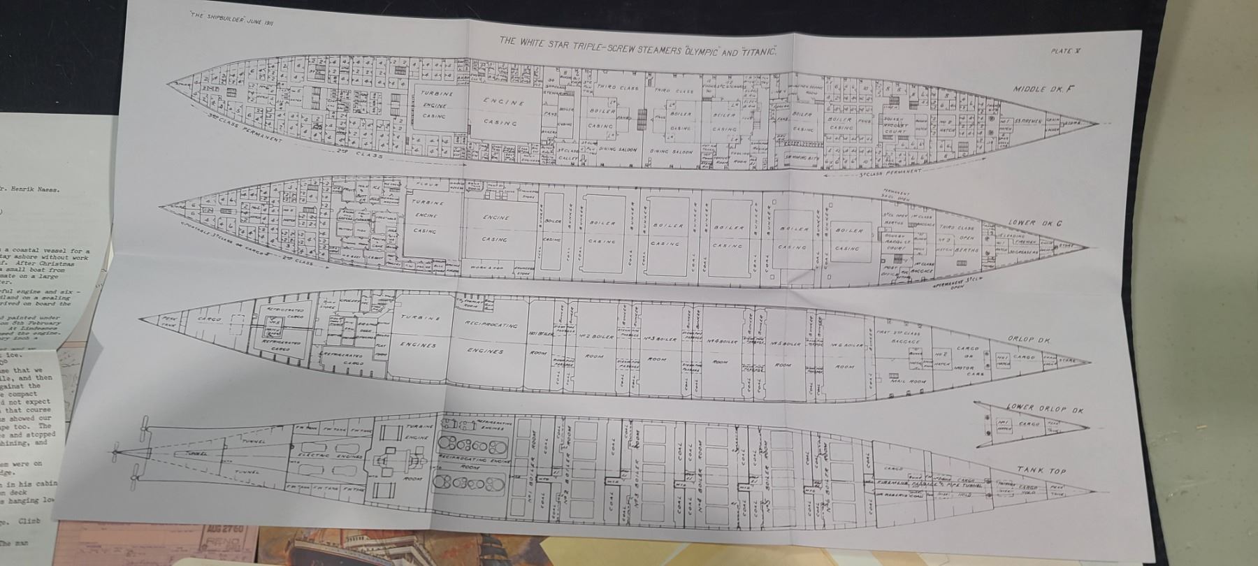 SOUVENIOR/ COPPIES OF OFFICIAL DOCUMENTS RELATING TO THE TITANIC - BOARDING PASSES, INSPECTION CARDS, BLUEPRINTS
