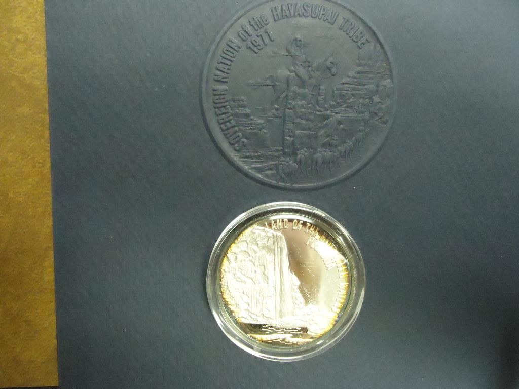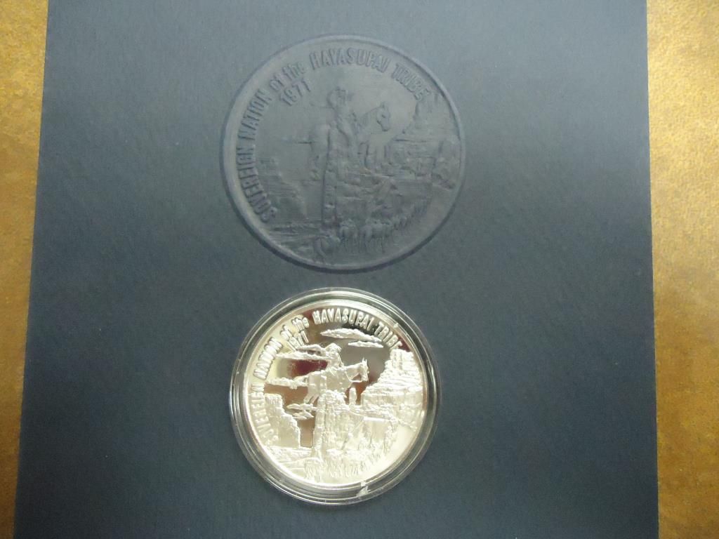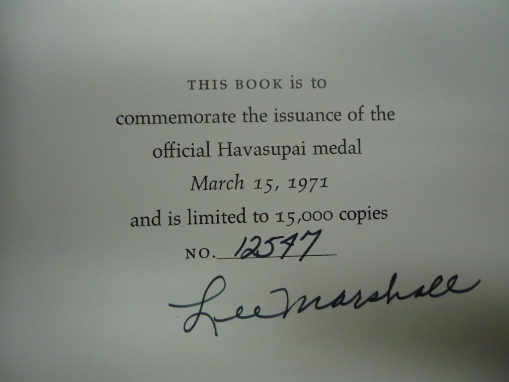 PROOF MEDAL AND BOOK ABOUT THE HAVASUPAI PEOPLE SIGNED BY LEE MARSHALL (TRIBAL CHAIRMAN)