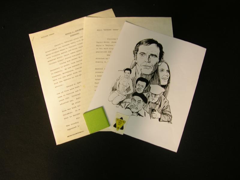 Soylent Green (1987) - Original piece of soylent green (2” x 2”). Also included, a NYPD decal used on policeman business cards, publicity artwork photo, Edward G. Robinson Bio & About The Movie press releases.