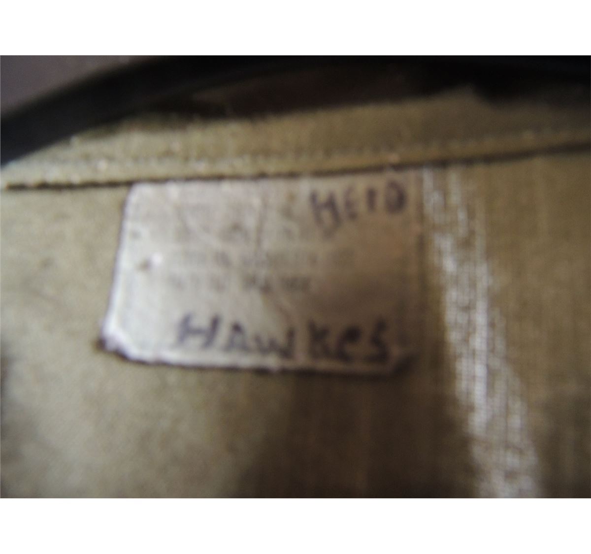 His name tag was reused on another suit but says HERO and HAWKES inside.