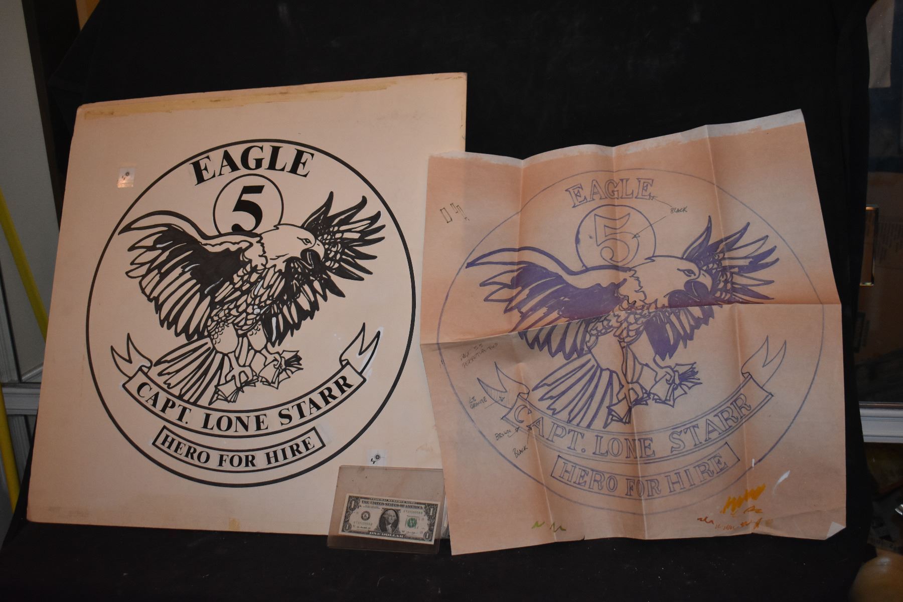 These are the original HAND DRAWN drawings and concept artwork for the logo on Lone Star's Winnebago in SPACEBALLS.