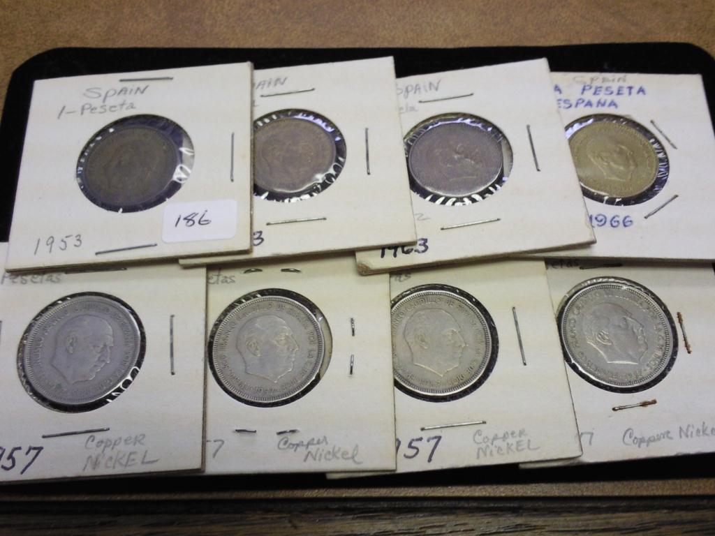 THE 1 PESATAS ARE 1953, 63, 63, 67 AND THE 5 PESATAS ARE ALL 1957