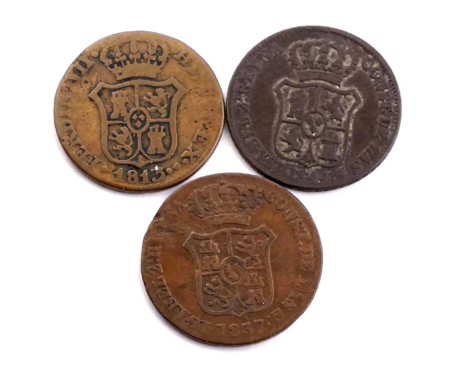 SPAIN Catalonia 1813-1844 3 Pieces Provincial Coins in Copper