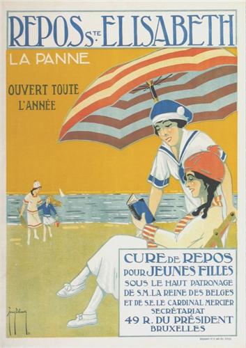 DELAMOSE. REPOS STE. ELISABETH-LA PANNE. 1920. 87x62cm. (34,5x24,5in.). Litografía. A-. Entelado.