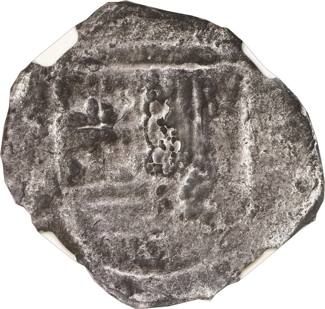 SPAIN, Seville, cob 4 reales, Philip III or IV, assayer not visible, NGC Shipwreck Effect (Sao Jose). Dark, corroded piece but with a fair amount of shield and cross detail, misidentified as Potosí on the label. Recovered from: São José, sunk in 1622 off Mozambique, east of Africa
