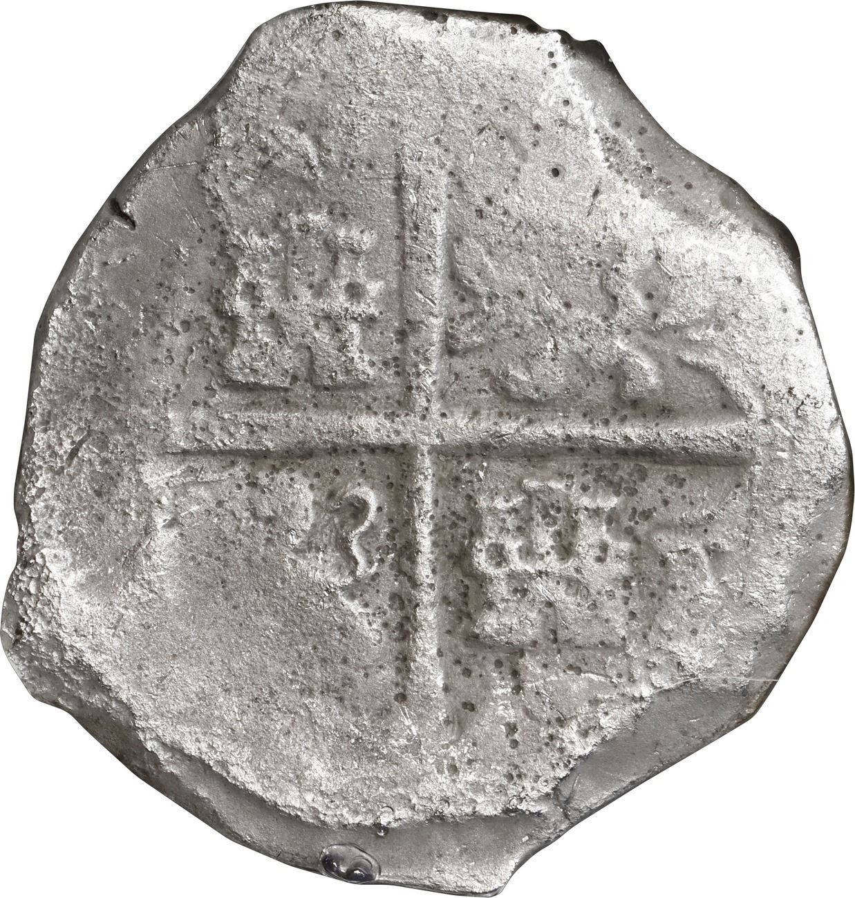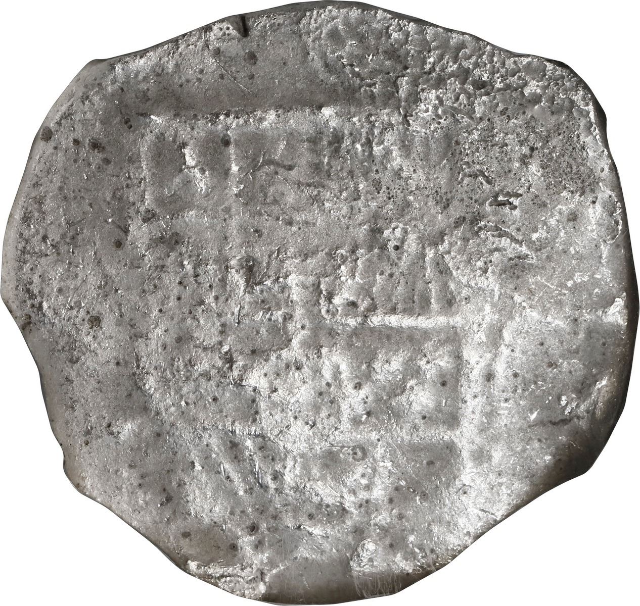 SPAIN, Seville, cob 8 reales, Philip III, assayer not visible, NGC Shipwreck Effect (São José Shipwreck Label). Cal-Type 171. A bit corroded with weak shield side yet featuring a nice, bold cross. With original Herman Moro tag and certificate. Recovered from: São José, sunk in 1622 off Mozambique, east of Africa