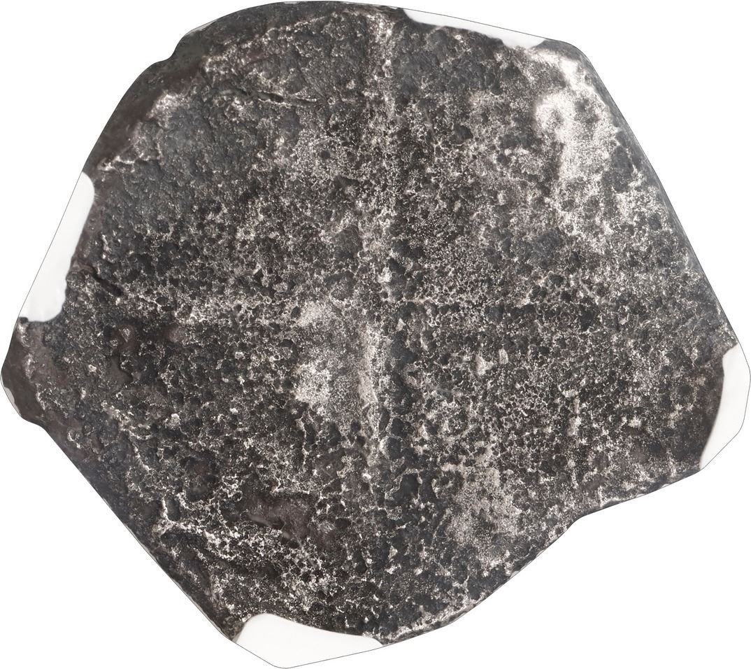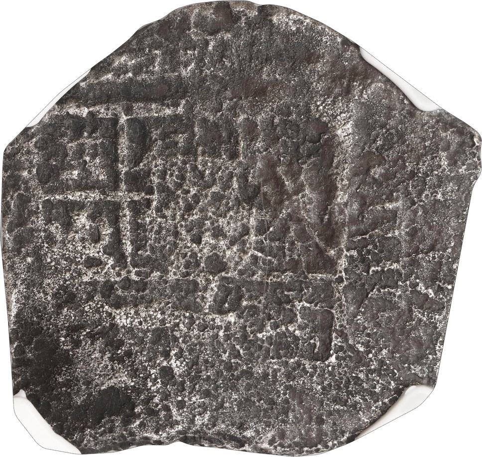 SPAIN, mint uncertain, cob 4 reales, Philip III, assayer not visible, NGC Shipwreck Effect (São José). Corroded piece with dark surfaces, partial shield and cross detail. Recovered from: São José, sunk in 1622 off Mozambique, east of Africa