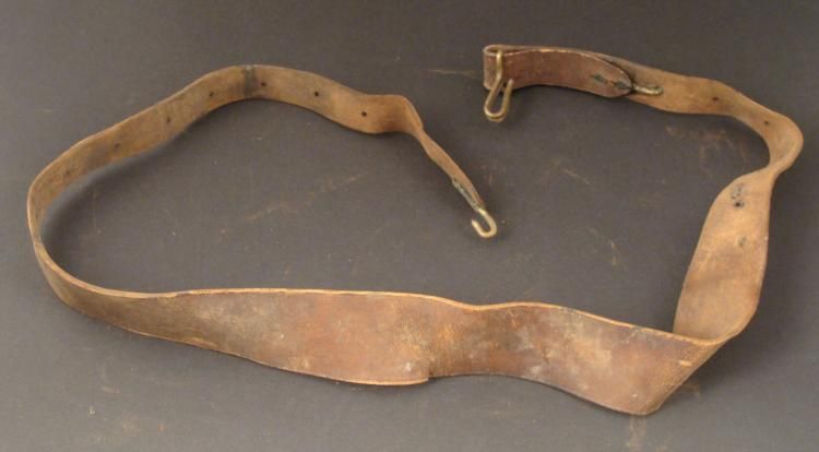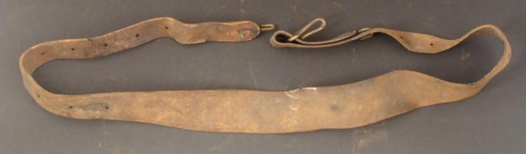 THIS IS A SPANISH-AMERICAN WAR, 1903 LEATHER EQUIPMENT, WITH A CARRY STRAP AND HOOK ENDS * IT IS MARKED "ROCK ISLAND ARSENAL 1903" WITH THE INSPECTOR'S MARK IN 2 PLACES. IT IS 45" LONG WITH BRASS HARDWARE. *