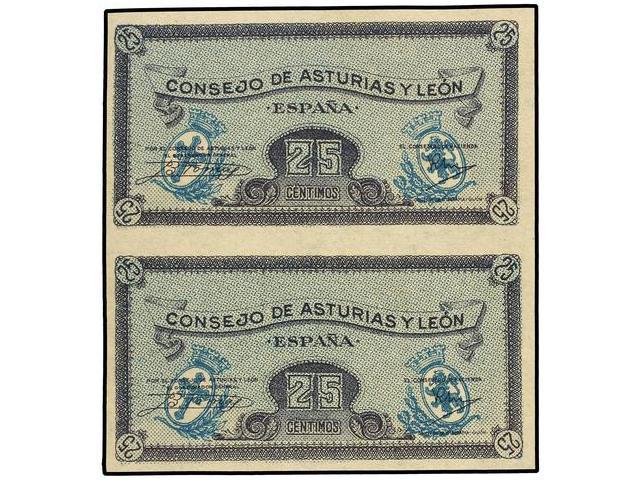 SPANISH BANK NOTES: CIVIL WAR, REPUBLICAN ZONE - Lote 2 billetes 25 Céntimos. 1937. CONSEJO DE ASTURIAS Y LEÓN. En bloque de 2 sin cortar. Sin numeración. Ed-C45a. SC.