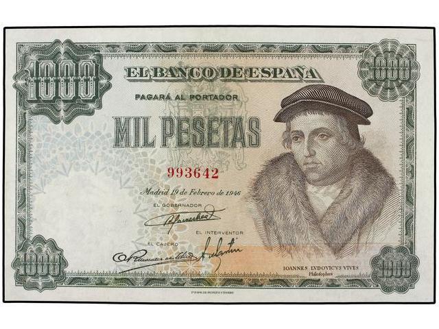 SPANISH BANK NOTES: ESTADO ESPAÑOL - 1.000 Pesetas. 19 Febrero 1946. Luis Vives. Ed-D54. MBC+.