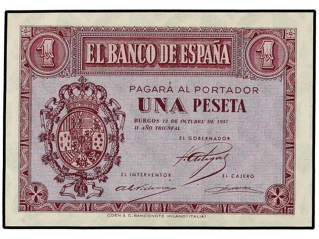 SPANISH BANK NOTES: ESTADO ESPAÑOL - 1 Peseta. 12 Octubre 1937. Serie C. (Leves arruguitas). Ed-D26a. SC.