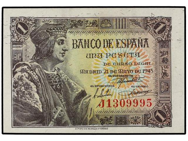 SPANISH BANK NOTES: ESTADO ESPAÑOL - 1 Peseta. 21 Mayo 1943. Fernando El Católico. Serie J.