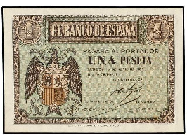 SPANISH BANK NOTES: ESTADO ESPAÑOL - 1 Peseta. 30 Abril 1938. Serie D. Ed-D29a. SC.