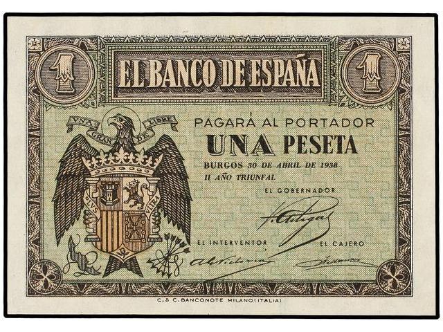 SPANISH BANK NOTES: ESTADO ESPAÑOL - 1 Peseta. 30 Abril 1938. Serie G. Ed-D29b. SC.