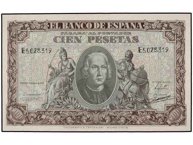 SPANISH BANK NOTES: ESTADO ESPAÑOL - 100 Pesetas. 9 Enero 1940. Colón. Serie E. Ed-D39a. SC-.