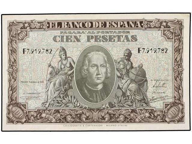 SPANISH BANK NOTES: ESTADO ESPAÑOL - 100 Pesetas. 9 Enero 1940. Colón. Serie F. Ed-D39a. EBC.