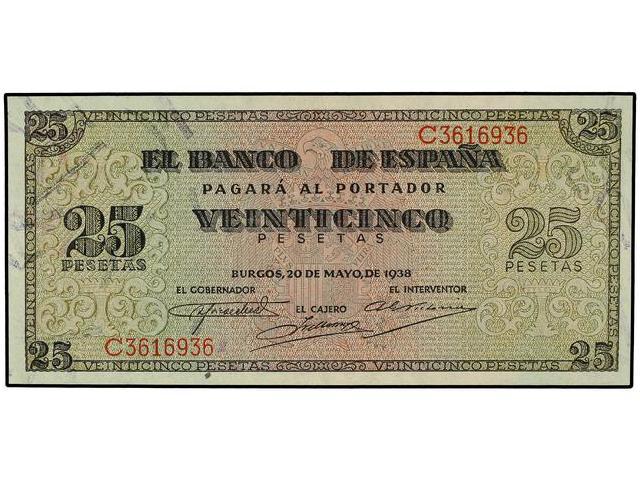 SPANISH BANK NOTES: ESTADO ESPAÑOL - 25 Pesetas. 20 Mayo 1938. Giralda de Sevilla. Serie C. (Levísimas manchitas). Ed-D31a. SC.