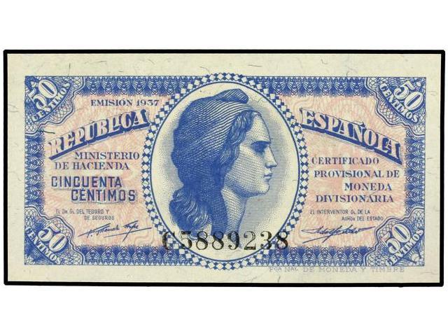 SPANISH BANK NOTES: ESTADO ESPAÑOL - 50 Céntimos. Emisión 1937. Serie C. (Leves arruguitas). Ed-C42a. SC..